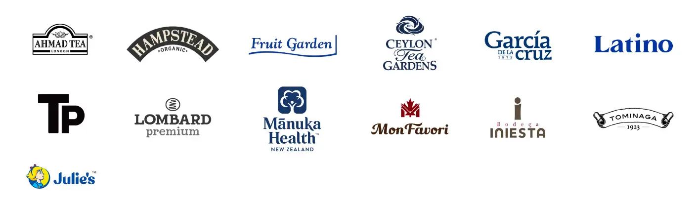 AHMAD TEA アーマッドティー、HAMPSTEAD TEA ハムステッドティー、FRUIT GARDEN フルーツガーデン、BPL セイロンティーガーデンズ、GARCIA DE LA CRUZ ガルシア、LATINO ラティーノ、TP、LOMBARD ロンバード、MANUKA HEALTH マヌカヘルス、Mon Favori モンファボリ、ボデガ・イニエスタ コラソン・ロコ、TOMINAGAオリジナル商品である飲料、缶詰や粉末商品、Julie’s ジュリーズなどが購入いただけます。
