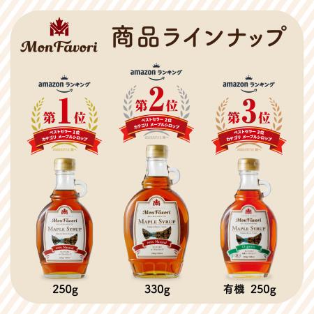 メープルシロップ国内売上No.1ブランド 「Mon Favori(モンファボリ)」3商品がAmazonランキングTOP3を独占!