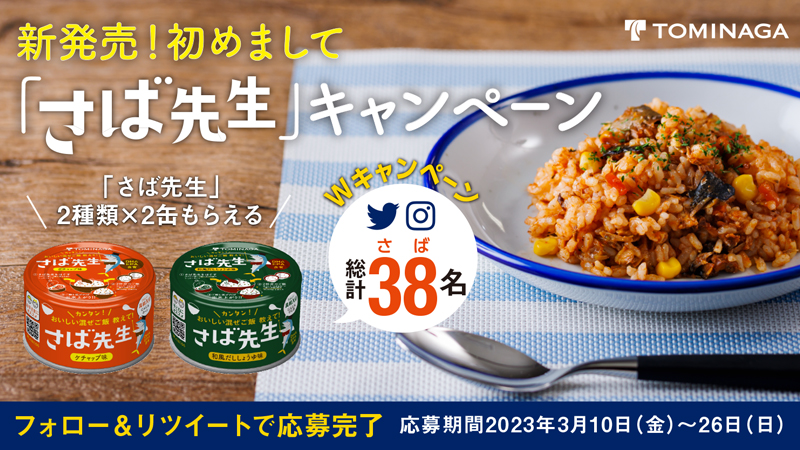 富永貿易株式会社(以下「当社」といいます。)は「さば先生」公式Twitterおよび公式Instagramアカウントにて『新発売!初めまして「さば先生」キャンペーン』(以下、本キャンペーンといいます。)を実施します。ご応募を希望される方は、本応募規約(以下,「本規約」といいます。)をよくお読みの上、同意される場合のみご応募ください。なお、本キャンペーンにご応募された方は、本規約に同意したものとみなします。