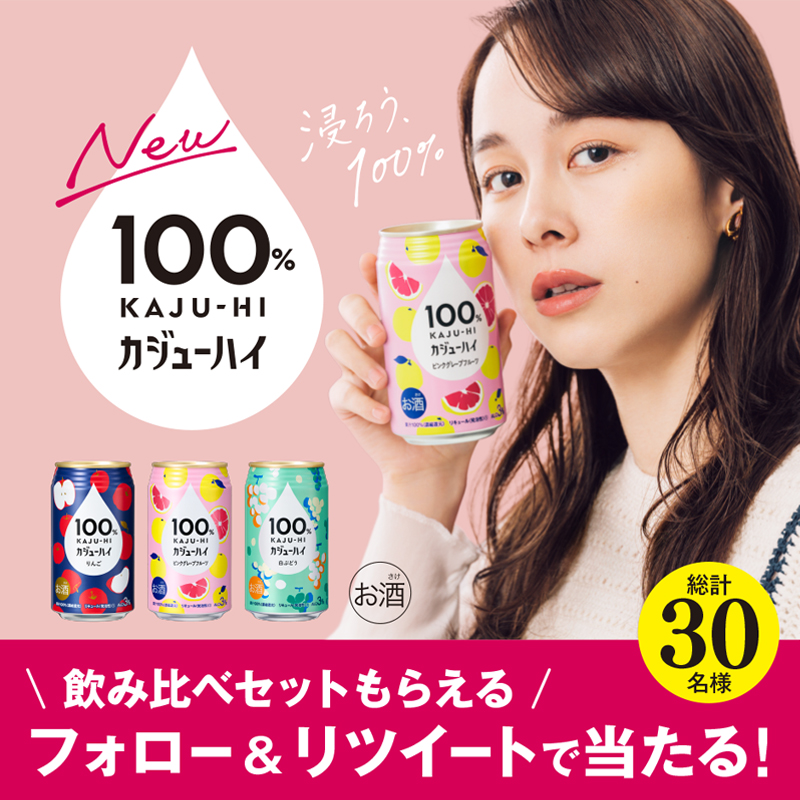 「100%カジューハイ」公式SNSアカウント 『100% #カジューハイ 新発売記念 100%果汁のお酒飲み比べセットプレゼントキャンペーン』 応募規約