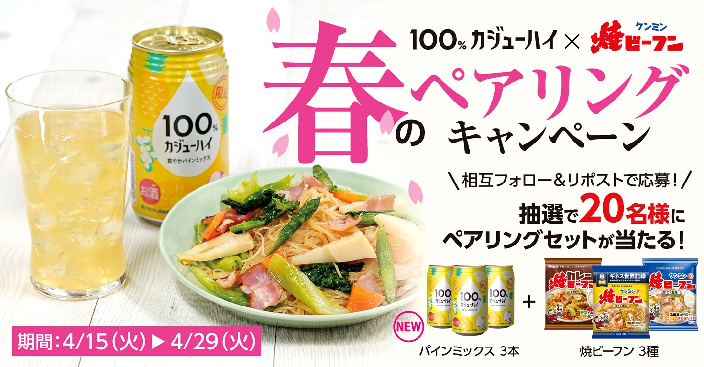 「100%カジューハイ」公式アカウント『100%カジューハイ×ケンミン焼ビーフン 春のペアリングキャンペーン』 応募規約
